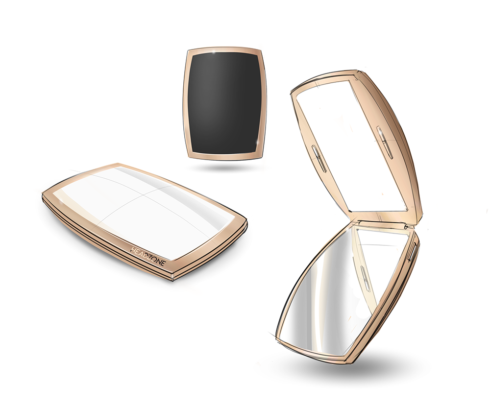 Our team researched aesthetic trends in the beauty and tech industries to inspire form and style while simultaneously exploring possible solutions for hinge mechanics.